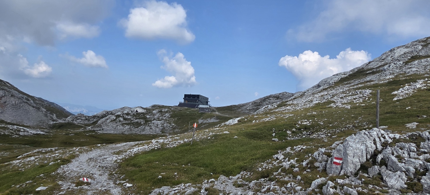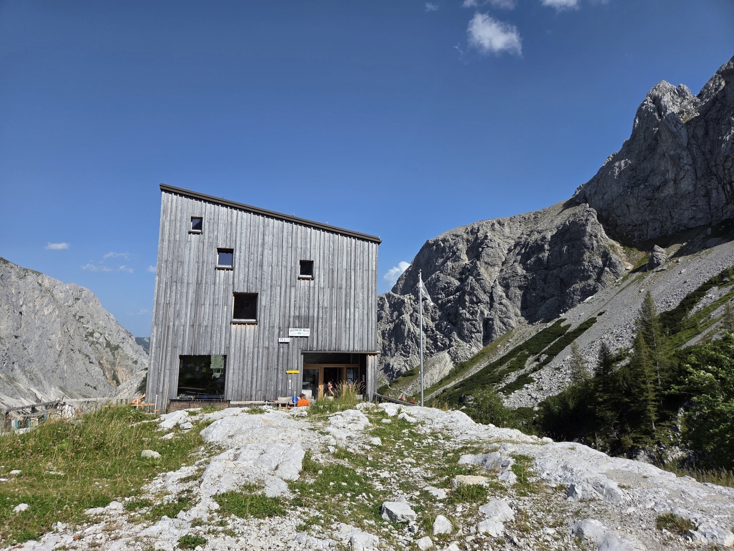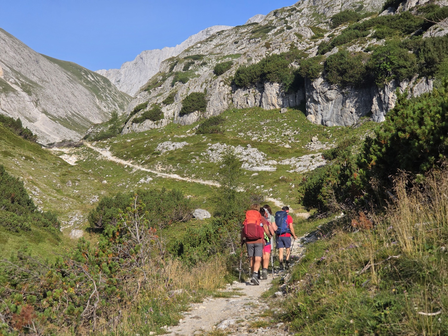 Gestartet wurde um 06.30 Uhr in Waldkirchen und mit einem Kleinbus ging die Fahrt über Passau, Linz, Amstetten und Mariazell bis zum Seebergsattel auf 1254 m. Vom Parkplatz führte der Weg zuerst 300 Hm steil bergab bis nach Seewiesen. Von hier erfolgte der Aufstieg bei schweißtreibenden Temperaturen durch das Seetal über Wiesenböden und Bergwald zum Lettanger, auf steinigem Weg durch den Bösen Wald zur Florlhütte. Danach ging es über den Höllsattel mit dem Franzosenkreuz leicht bergab in den Höllboden und durch das steile Voisthalergassl aufwärts zur neu erbauten Voisthalerhütte auf 1654 m, dem ersten Übernachtungsziel.