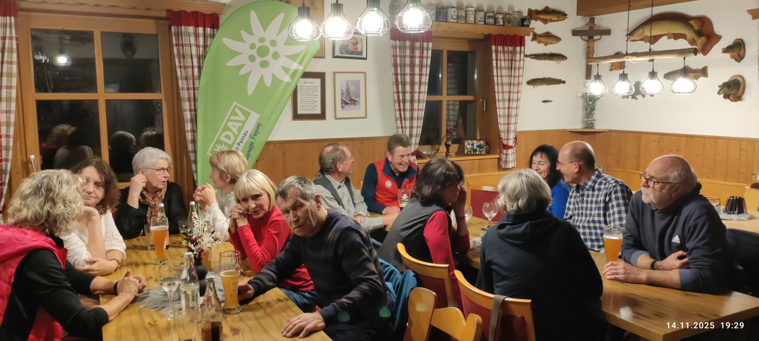 Bei netten Gesprächen in großer Runde und an den einzelnen Tischen ließ man die Erlebnisse bei den vergangenen Touren und auch bei der 55- Jahr- Feier bei herrlichem Sonnenschein auf dem Schneibsteinhaus mit den Touren der beiden Tage nochmals Revue passieren. So verging der Abend wie im Flug, bis dann gegen 23.00 Uhr die ersten Mitglieder aufbrechen mussten.