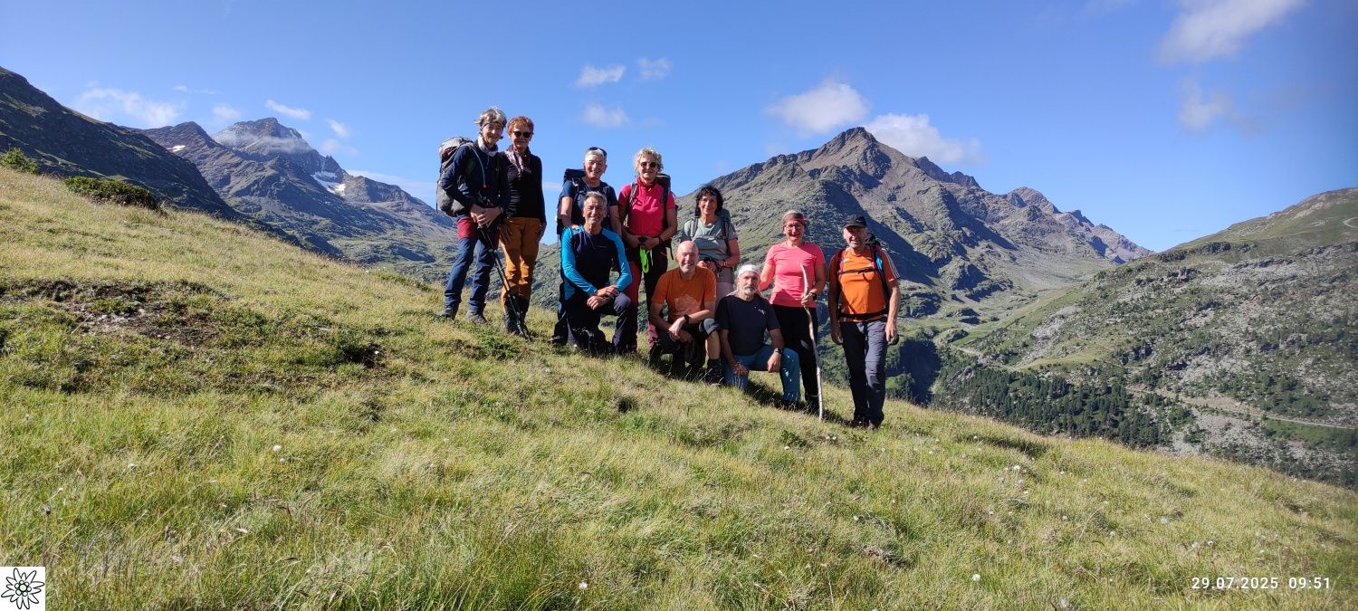 Der dritte Tag brachte den ersehnten strahlend blauen Himmel. Perfekt für die atemberaubende Wanderung auf den Dosso Tresero 2356 m, mit herrlichem Ausblick hinab auf Santa Caterina und zurück auf die gesamte Route der vergangenen Tage. Weiter ging es entlang von Wasserfällen und über zahlreiche Gletscherbäche, die allesamt den Torrente Gavia speisen. Langsam kam das Ziel, der Gaviapass 2652 m in Sicht, eingerahmt vom Corno dei Tre Signori 3360 m und dem Monte Gavia 3220 m. Direkt auf der Passhöhe lag die letzte Übernachtungsstation, das Rifugio Bonetta. Hoch frequentiert von unzähligen Motorrad-Bikern und Radfahrern, welche die berühmte Bergetappe der „giro d´italia“ fahren wollen. Nach kurzer Rast war noch genügend Zeit, den Monte Gavia 3220 m zu besteigen, um nochmal den herrlichen Rundumblick auf die Ortler Alpen zu genießen.