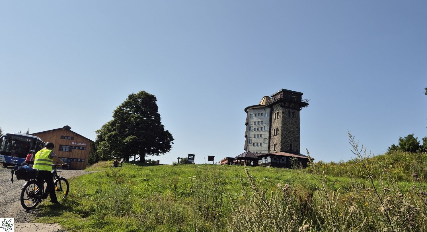 Für das Programm 2025 der DAV- Sektion Passau und der Ortsgruppe Freyung hatte Franz Uhrmann für Maria Himmelfahrt eine E-Bike Tour auf den Nordgipfel des Böhmerwaldes, den 1042 m hohen Cerchov in Tschechien, mit 44 km und 1100 hm ausgeschrieben.
