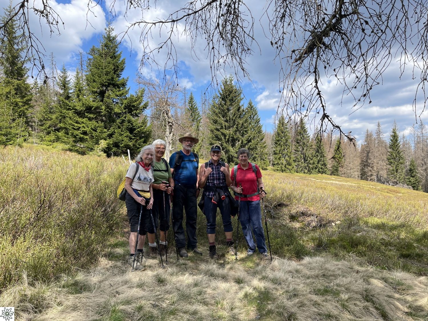 Der Abstieg erfolgt dann über den Hüttenweg mit der Markierung „Esche“ bis zur Abzweigung vom Wanderweg „Heidelbeere“ zur Höllbachschwelle, von hier auf dem Normalweg (Forststraße) zum Parkplatz. Trotz der Umleitungen war es für die Mädels und den Tourenleiter eine eindrucksvolle, informative und genussvolle Wanderung.
