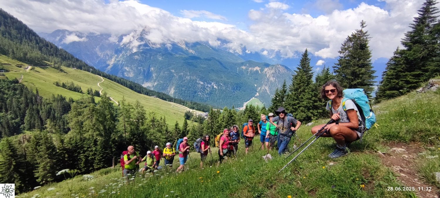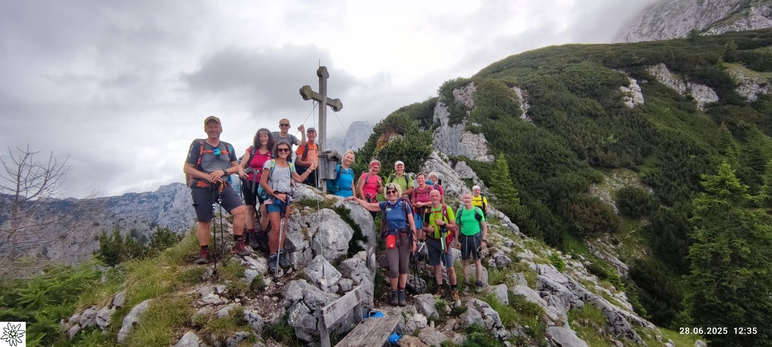 Bereits im Sommer 2024 begannen die Planungen für die zweitägige Jubiläumstour aus Anlass des 55-jährigen Bestehens der DAV- Ortsgruppe Freyung, welche am 10. Juni 1970 im Hotel zur Post in Freyung gegründet wurde. 55 Mitglieder bekamen die Möglichkeit, auf verschiedenen Routen ein gemeinsames Ziel zu erwandern: das Schneibsteinhaus in den Berchtesgadener Bergen. Diese Teilnehmerzahl war rasch erreicht und die detaillierten Planungen für diesen besonderen Ausflug konnten beginnen. Am letzten Juniwochenende war es dann so weit! Mit einem komfortablen Reisebus der Fa. Prager, Freyung, ging die Fahrt über Salzburg nach Hinterbrand bei Berchtesgaden. Auf etwa 1100 m Seehöhe begann dann nach Komplettierung der Ausrüstung der Aufstieg in Richtung „Schneibsteinhaus“. Die teilnehmenden Tourenleiter der Ortsgruppe haben sich im Vorfeld verständigt, dass jeder eine andere, mehr oder weniger anspruchsvolle Route für den Aufstieg plant und anbietet, damit dann der Start am Samstag reibungslos von statten geht. So ging Hans Donaubauer mit seiner Gruppe über die Brettgabel des Göllstockes und zurück über das Hohe Brett (2340m), Lothar Schäfer über die Königsbergalm und Rita Gell über die Mitterkaseralm den direkten Weg zur Hütte.