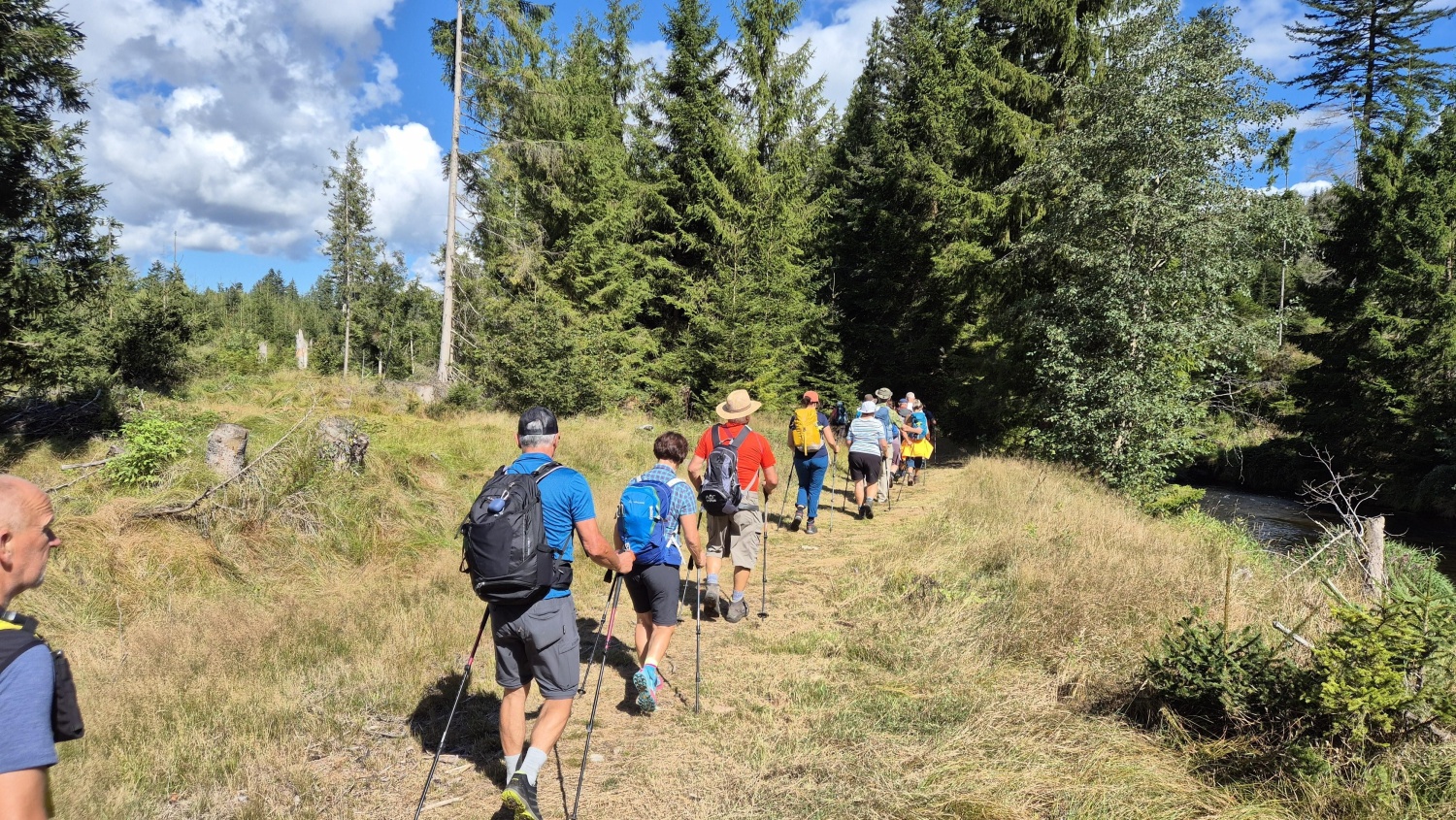 Diese Tour wollten fünfzehn Mitglieder der DAV-Ortsgruppe Freyung unter Leitung von Wanderleiter Lothar Schäfer gemeinsam genießen. Bei bestem Wanderwetter traf sich die Gruppe am Bahnhof Zwiesel. Gut gelaunt starteten die Wanderer direkt zum Flusstal des Großen Regen, der hier mit dem Kleinen Regen zum Schwarzen Regen, dem längsten Fluss des Bayerischen Waldes, zusammenfließt.
