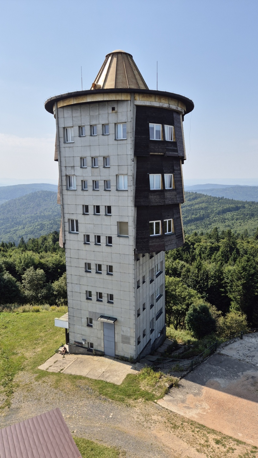 Die Teilnehmer starteten in Fahrgemeinschaften ab dem Parkplatz Brodinger in Freyung nach Furth im Wald. Ausgangspunkt dort war ein Parkplatz in der Nähe des Stadtzentrums. Die sieben E-Bike Fahrer komplettierten ihre Ausrüstung und schon ging es los, noch kurz durch die Stadt und dann über freies Feld, vorbei am Vogelherd auf 508 m Höhe, stets bergauf in Richtung Grenze und dem Tagesziel. Nach kurzem und anstrengendem Weg auf der Bundesstraße CHA40, ging die Fahrt vorbei am Schloss in Richtung Voitenberg, bis dann die Skipisten und Lifttrassen auf dem Dreiwappenweg gequert wurden. Immer in lichtem Wald, hinauf zum Brombeerriegel, wurde dann die Wappentafel „Drei Wappen“ (Churfürstentum Bayern – Königreich Böhmen – Herzogtum Pfalz) erreicht, wo der Weg in einen Waldsteig überging, der von allen Teilnehmern meisterhaft bewältigt wurde. Nun führte die Route weiter auf einer Forststraße, um den „Smrci“ mit 939 m Höhe herum, bis dann die Bendahütte (Waldhütte unter dem Brunnhäusl) erreicht war. Kurz vor „Halinova hora“, einer aufgelassenen Kaserne aus der Zeit des „Kalten Krieges“ führte eine Panzerstraße mit massiven Beton- Spurplatten, vorbei am Karel-Dvorak-Denkmal, hinauf zum Tagesziel, den 1042 m hohen Cerchov, der bis in die 1990er Jahre intensiv als Aufklärungsstation von der tschechoslowakischen Armee genutzt wurde. Neben dem 1904 als Aussichtsturm errichteten Kurz-Turm (benannt nach seinem Erbauer, seit 2000 wieder zugänglich), wurde 1987 durch die Armee ein zweiter, größerer Turm errichtet, der heute noch Flugsicherungszwecken dient und nicht zugänglich ist.