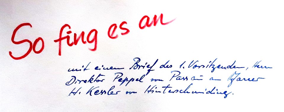 Anfang 0001Die Idee war geboren und am 10. Juni 1970 fand im Gasthof zur Post in Freyung die Gründungsversammlung von Bergbegeisterten aus dem ehemaligen Landkreis Wolfstein statt. Es waren 42 Mitglieder anwesend (16 aus Freyung, 14 aus Waldkirchen und 12 aus den umliegenden Dörfern). Die Ortsgruppe Freyung wurde als Untergruppe der Sektion Passau gegründet und den Vorsitz übernahm Pfarrer Herbert Kessler aus Hinterschmiding.